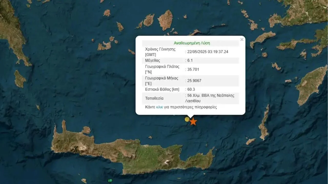 Intensiteti dhe kohëzgjatja e tërmetit ishin të mëdha në Hania dhe Rethimno dhe bëri që shumë banorë të dilnin jashtë shtëpive të tyre në dy prefekturat e Kretës Perëndimore. Sipas organeve lokale nuk ka pasur dëme materiale, raporton korrespondenti i Top Channel, Aleksandër Marku.