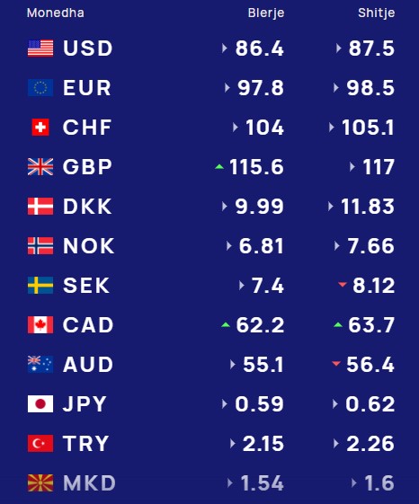 Ndërsa paundi britanik do blihet me 115.6 lekë dhe do shitet me 117 lekë.