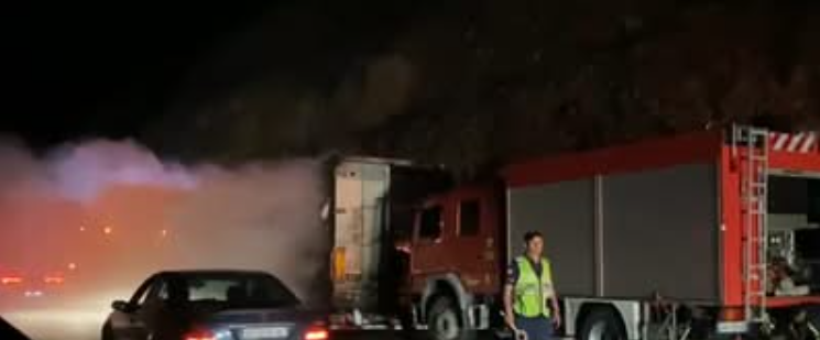 Mbrëmjen e djeshme, një kamion është përfshirë nga flakët në Rrugën e Kombit, pranë tunelit të Kalimashit, ndërsa transportonte mallra ushqimore dhe pije energjike.