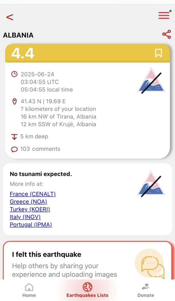 Një tërmet me magnitudë 4.4 të shkallës Rihter është regjistruar në orët e para të mëngjesit të sotëm, më 24 qershor 2025, në orën 05:04 me orën lokale.