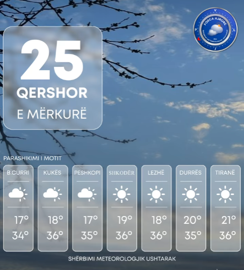 Temperaturat minimale do të jenë 17 gradë Celsius, ndërsa maksimale 37 gradë.