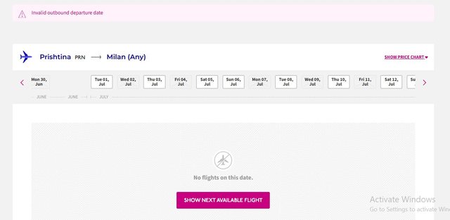 Kontrolli online evidentoi se Wizz Air, nuk ofron fluturime nga aeroporti i Prishtinës drejt Romës në këtë datë.