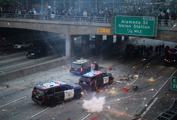 Autostradat bllokohen, makinat në flakë, 10 të arrestuar në protestat e Los Anxhelos
