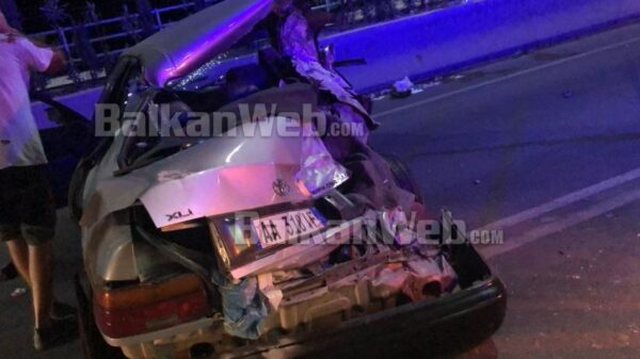 Në foto shihet se si automjeti është shkatërruar plotësisht, pas përplasjes me barrierat anësore të rrugës.