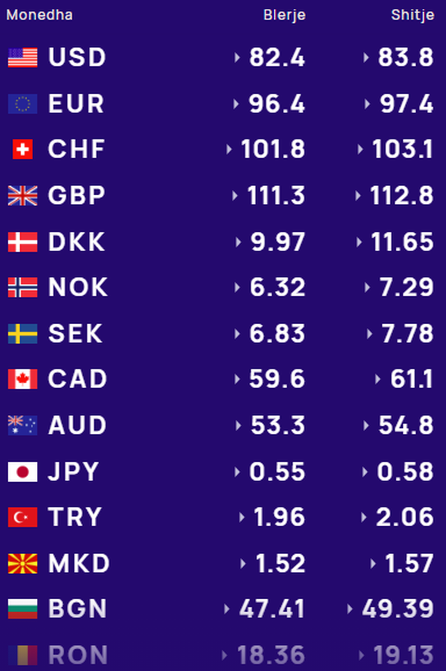 Më poshtë, po sjellim të dhënat e këmbimin valutor, për të gjitha monedhat e huaja: