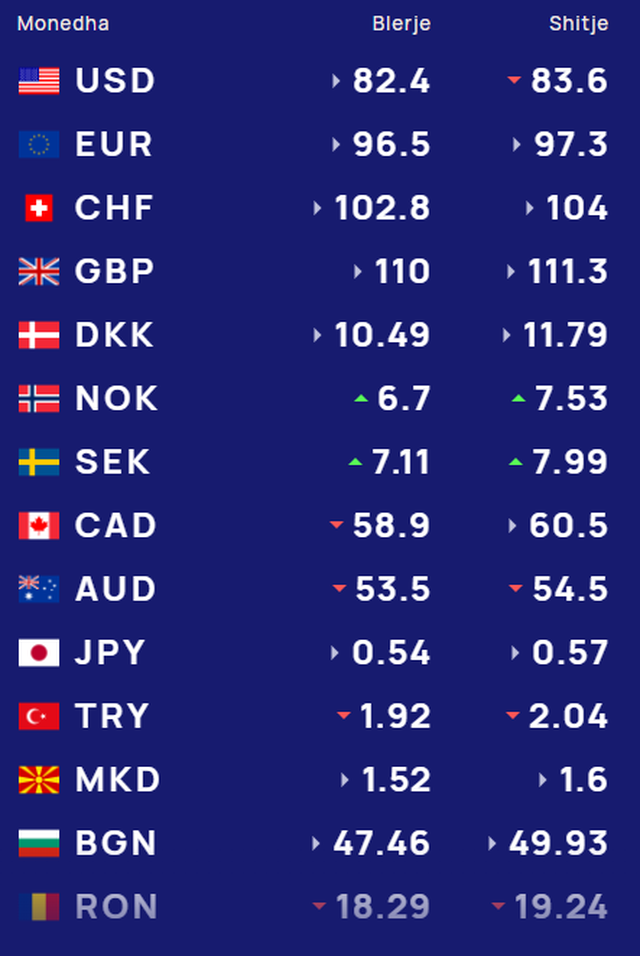 Më poshtë, po sjellim të dhënat e këmbimin valutor, për të gjitha monedhat e huaja: