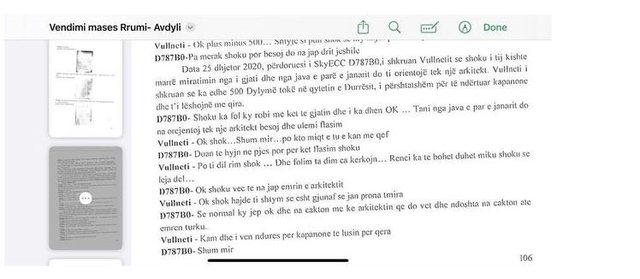 Data 25 dhjetor 2020, përdoruesi i SkyECC D787B0,i shkruan Vullnetit se shoku i tij kishte marrë miratimin nga i gjati dhe nga java e parë e janarit do ti orientojë tek një arkitekt. Vullneti i shkruan se ka edhe 500 Dynymë tokë në qytetin e Durrësit, i përshtatshëm për të ndërtuar kapanone dhe t’i lëshojnë me qira.