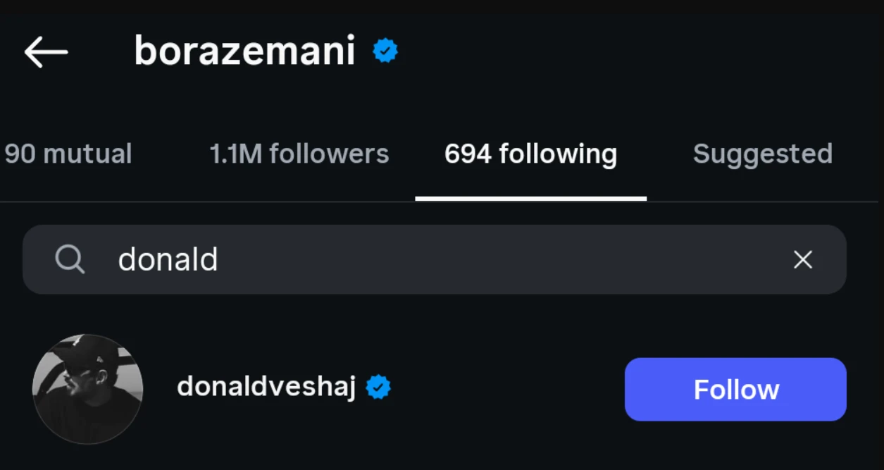 Sipas mediave, dyshimet për krizë në çift janë nxitur nga fakti se dyshja, sipas tyre, nuk e ndjekin më njëri-tjetrin në Instagram dhe se kanë fshirë fotot e përbashkëta, veprime këto që u interpretuan si fundi i lidhjes së tyre.Megjithatë, një verifikim i shpejtë tregon se ky informacion nuk qëndron. Si Bora, ashtu edhe Donaldi, vazhdojnë të jenë në listën e ndjekësve të njëri-tjetrit në platformën e Instagramit.