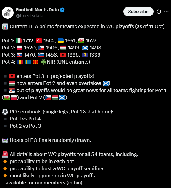 Vlen të theksohet se këto janë parashikime momentale, pasi situata mund të ndryshojë në muajin nëntor, pas ndeshjeve të fundit në kualifikuese.