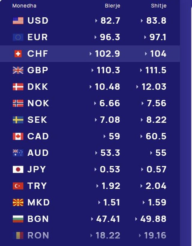 Më poshtë, po sjellim të dhënat e këmbimin valutor, për të gjitha monedhat e huaja: