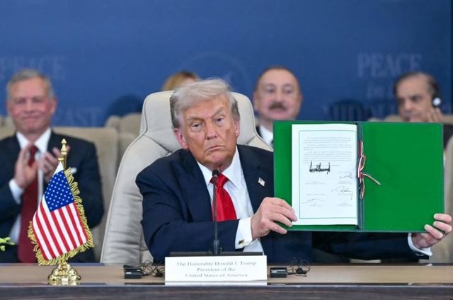 Në Samitin për paqe në Egjipt, Presidenti amerikan, Donald Trump, nënshkroi diten e sotme një dokument me Egjiptin, Turqinë dhe Katarin, për marrëveshjen e armëpushimit në Gaza.