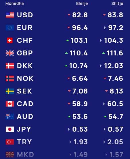Ndërsa paundi britanik do blihet me 110.4 lekë dhe do shitet me 111.6 lekë.