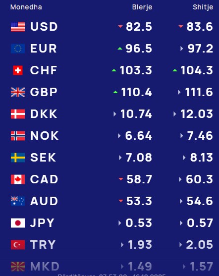 Ndërsa paundi britanik do blihet me 110.4 lekë dhe do shitet me 111.6 lekë.