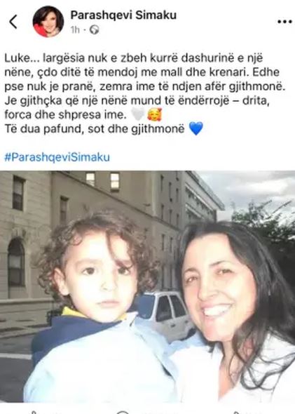 Këngëtarja e njohur shqiptare, Parashqevi Simaku, ka prekur zemrat e ndjekësve të saj me një postim emocionues për djalin e saj, Luke. Përmes një mesazhi të ndjerë në rrjetet sociale, ajo ka shprehur dashurinë e pafund dhe mallin që ndien për të birin, edhe pse largësia i ndan.