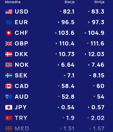 Ndërsa paundi britanik do blihet me 110.4 lekë dhe do shitet me 111.6 lekë.