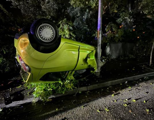 Si duket përplasja dyshohet të ketë qenë e fortë, pasi mjeti ka përfunduar i përmbysur. Mësohet se nga aksidenti janë shkaktuar vetëm dëme materiale.