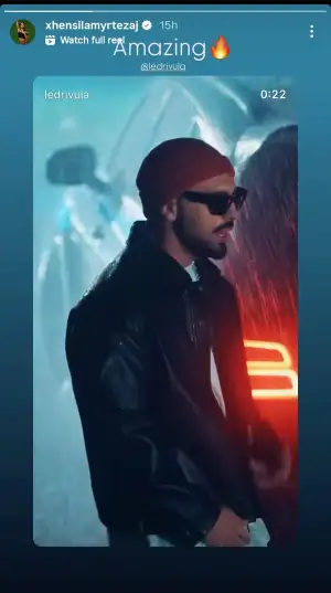 Ajo postoi në “Instastory” një fragment nga videoklipi i reperit duke shkruar “Amazing” dhe duke shoqëruar mesazhin me një emoji zjarri, duke treguar kështu mbështetjen e saj për kolegun.