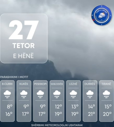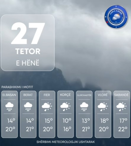 Ditën e hënë (27 tetor) vendi ynë do të ndikohet nga kushte atmosferike të paqëndrueshme.