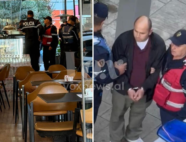 Siç mund të dallohet edhe nga pamjet e siguruara nga Voxnews.al, policia ka mbërritur në vendngjarje dhe ka kryer ndaimin e autorit të dyshuar të krimit, kamarieri Filip Shehu.