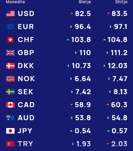 Ndërsa paundi britanik do blihet me 110 lekë dhe do shitet me 111.2 lekë.