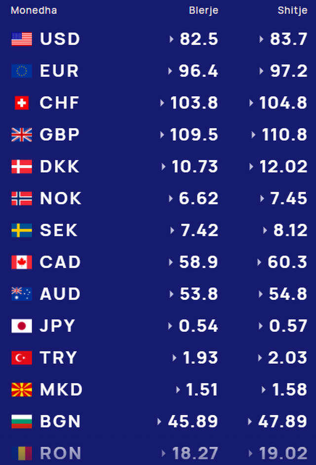 Më poshtë, po sjellim të dhënat e këmbimin valutor, për të gjitha monedhat e huaja: