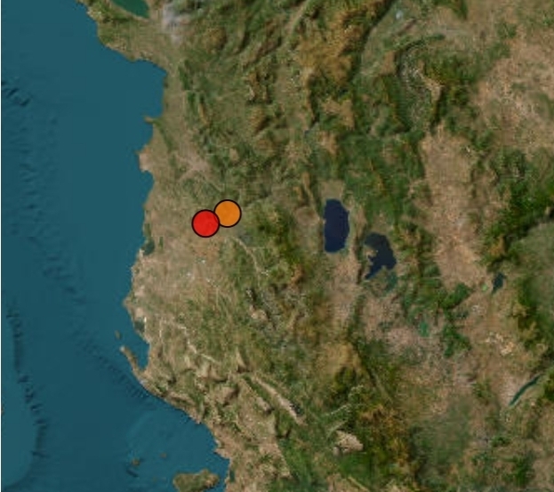 Shërbimi shtetëror shqiptar IGJEUM raporton për dy tërmete në të njëjtën kohë siç shikoni tabelën.