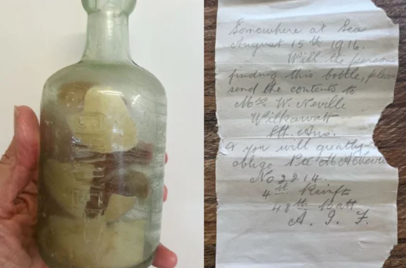 Dy mesazhe në një shishe të shkruara nga ushtarë australianë në fillim të udhëtimit të tyre drejt Francës në Luftën e Parë Botërore, janë zbuluar më shumë se një shekull më vonë në bregdetin e Australisë.