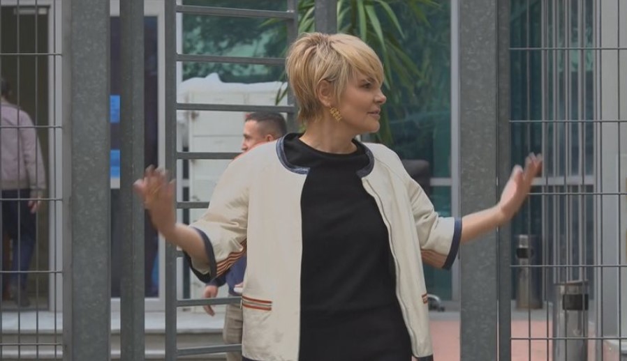 Pas daljes nga SPAK, ajo ka ndalur për pak momente me gazetarët, duke shkëmbyer disa batuta.