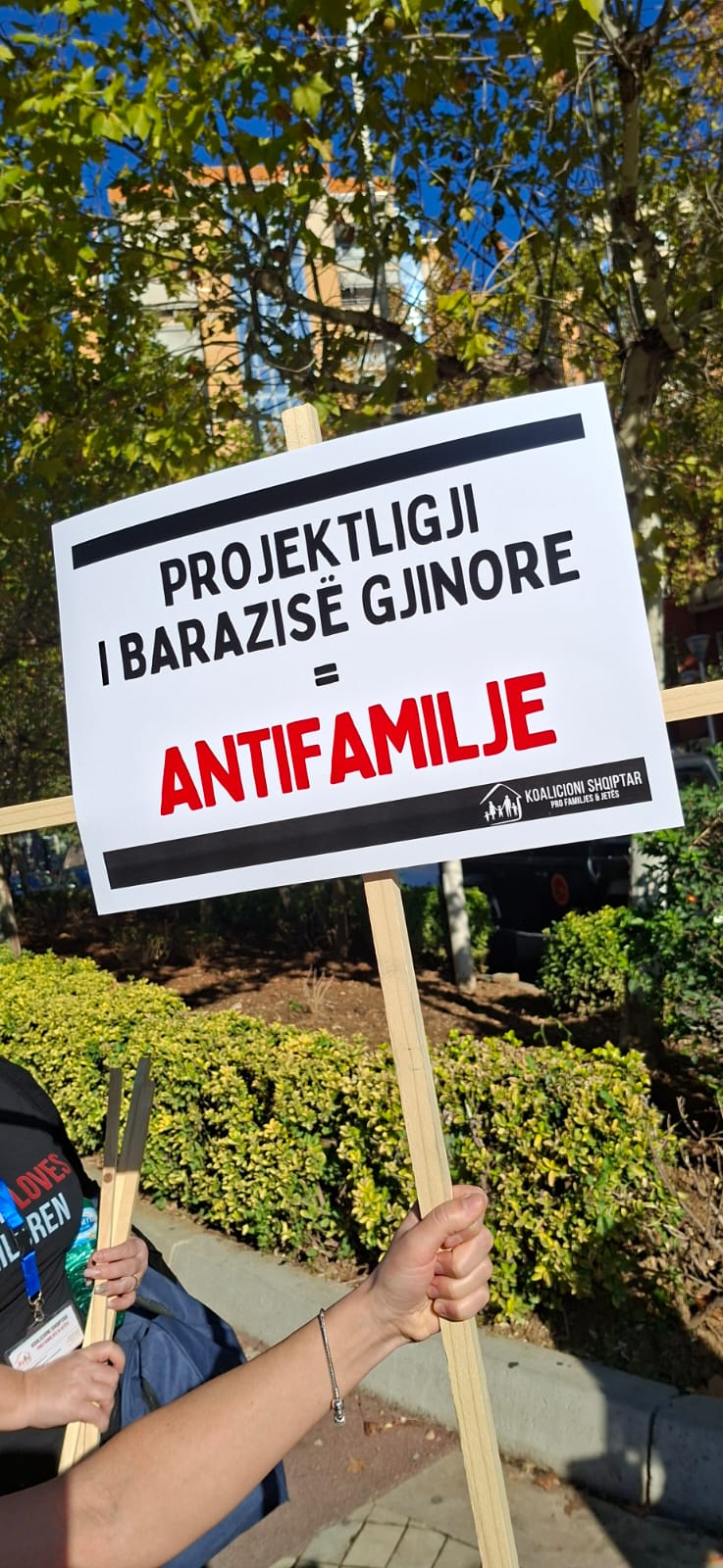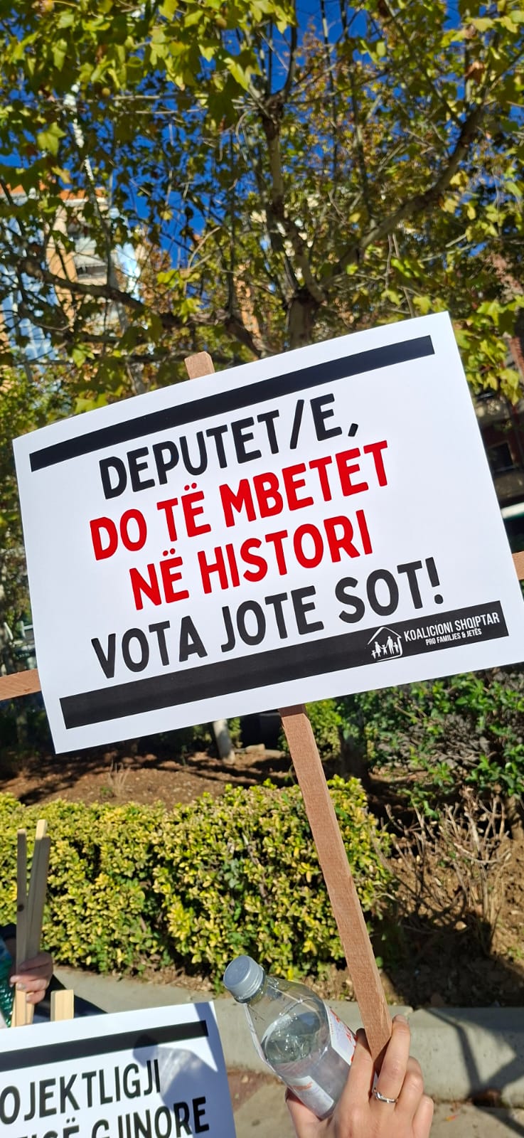 Protesta është thirrur nga “Koalicioni Shqiptar pro Familjes dhe Jetës”. Moto e protestës është mbrojtja e familjes, fëmijëve dhe jetës, që sipas aktivistëve, me projektligjin e ri vihen në rrezik.