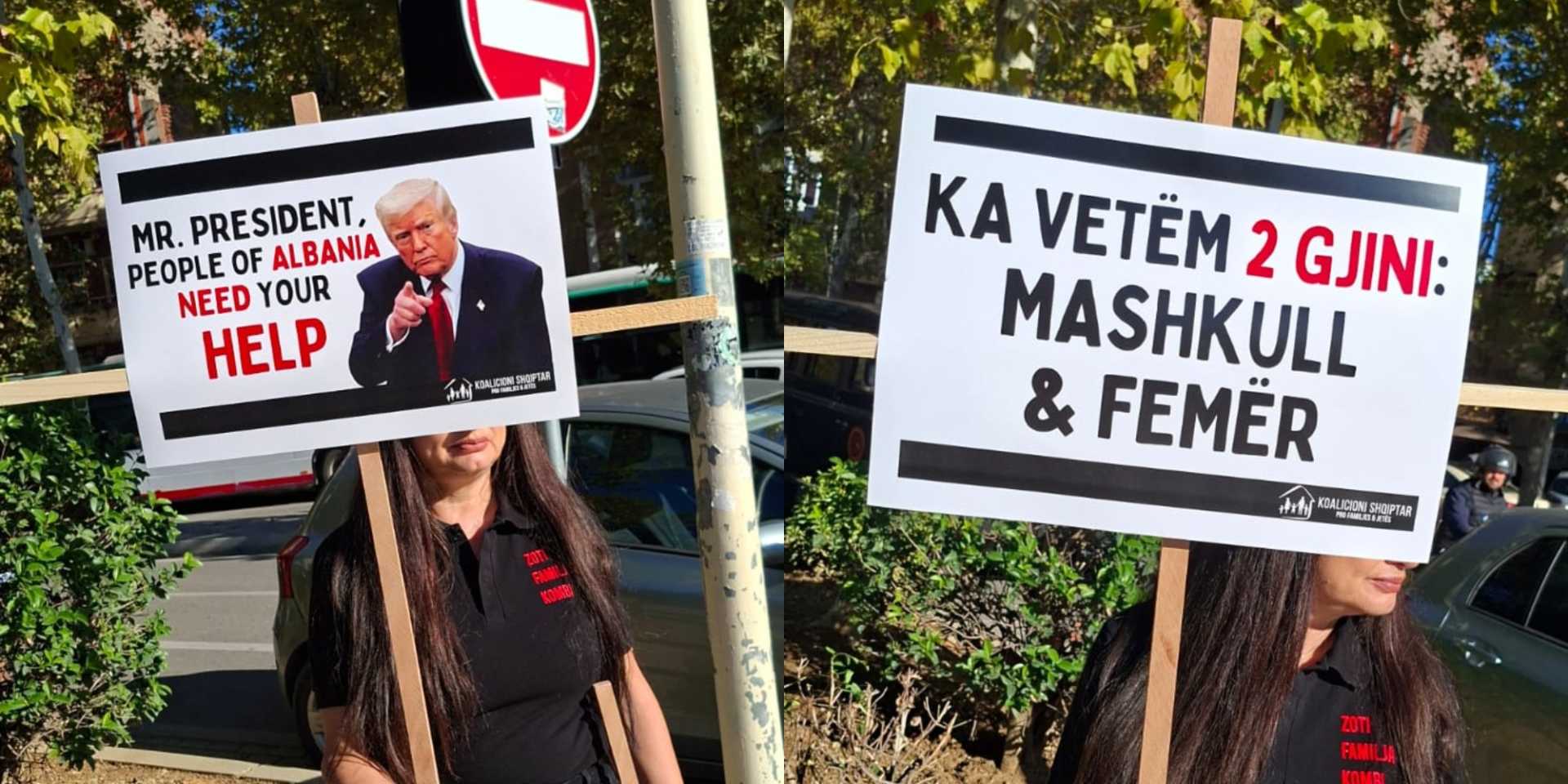 Protestuesit mbajnë pankarta në duar duke vënë theksin se ka vetëm dy gjini. Ata në një pankartë tjetër kërkuan ndihmën e presidentit amerikan , Donald Trump lidhur me këtë çështje.