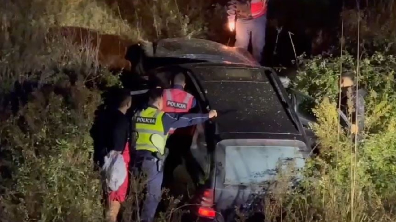 Këto janë pamjet e aksidentit të rëndë të ndodhur pak çaste më parë në Vlorë, ku policia po tenton të nxjerrë 5 të rinjtë nga makina tip “Benz” e cila ra në kanal.
