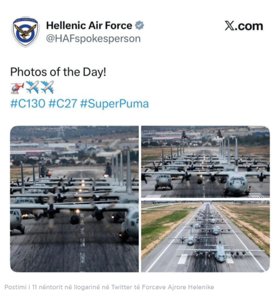 Forcat Ajrore të Greqisë në faqen zyrtare të tyre në rrjetet sociale, shpërndanë foto të aeroplanëve C 130 të Forcave të Armatosura Turke të ulur në një pistë, pak pas urdhrit për kontrollin e të gjithë flotës që Ankaraja posedon, pasi një prej këtyre avionëve u rrëzua në Gjeorgji, e ku humbën jetën 20 ushtarë.