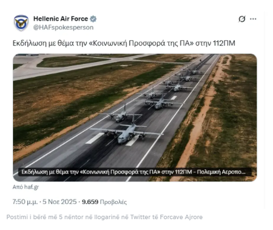 “Fotoja e ditës” ishte mbishkrimi mbi postimin provokues të Forcës Ajrore Helene, me postimin që u kritikua ashpër në rrjet.