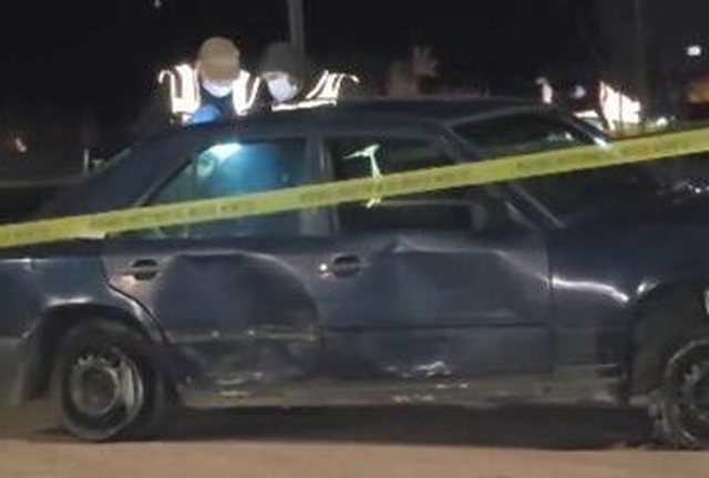 Automjeti duket se është qëlluar në ecje e sipër dhe për t’i shpëtuar plumbave është aksidentuar dhe është përplasur në bordurën e një karburanti.