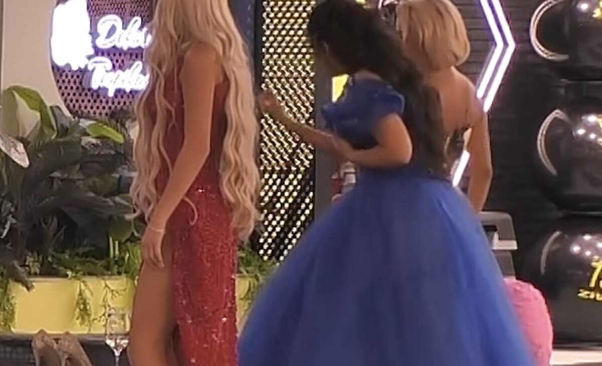 Vetëm pak kohë pas hyrjes, ajo është futur në pishinë dhe para se të zhytet, ka hequr sutjenat, duke mbetur vetëm me tanga dhe duke ekspozuar format e saj përpara banorëve dhe kamerave.