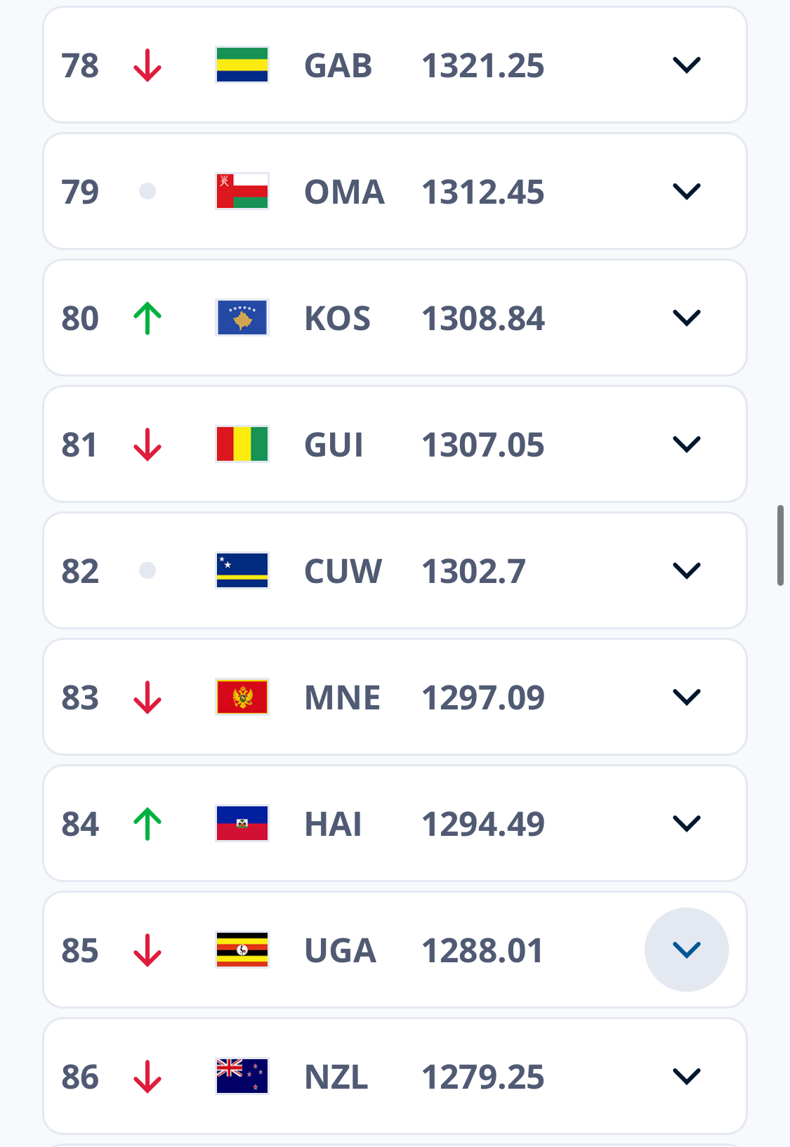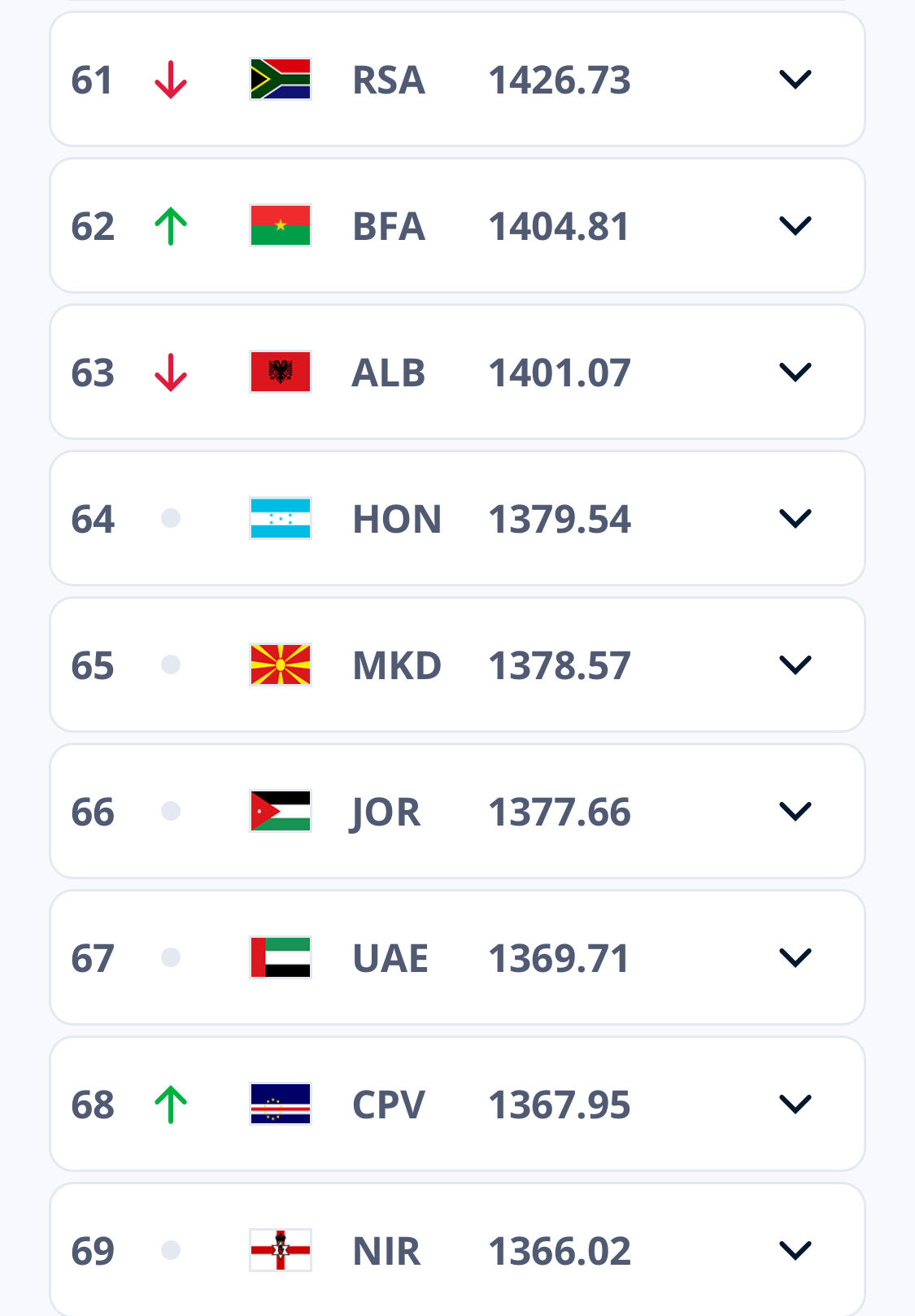 Kombëtarja kuqezi ka humbur dy pozicione dhe ka zbritur nga vendi i 61-të në vendin e 63-të.