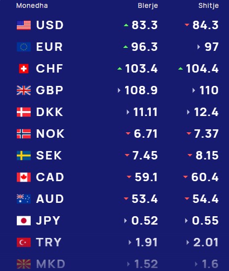 Ndërsa paundi britanik do blihet me 108.9 lekë dhe do shitet me 110 lekë.