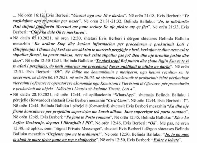 Më pas, në orën 12:48, në aplikacionin “Signal Private Messenger”, shtetasi Evis Berberi i dërgon shtetases Belinda Balluku mesazhin “Urgjente apo ne te ardhmen?”.
