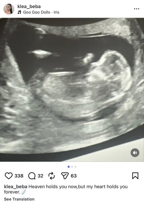 Vetëm pas humbjes së foshnjës, Klea vendosi t’a bëjë publike lajmin e trishtë, duke ndarë me ndjekësit dhimbjen e madhe dhe përpjekjen e saj për ta përballuar këtë moment të vështirë.