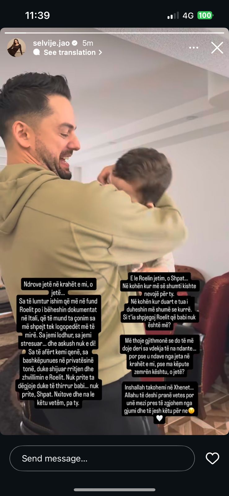 Sa të lumtur ishim që më në fund Roelit po i bëheshin dokumentat në Itali, që të mund ta çonim sa më shpejt tek logopedët më të mirë. Sa jemi lodhur, sa jemi stresuar… dhe askush nuk e di! Sa të afërt kemi qenë, sa bashkëpunues në privatësinë tonë, duke shijuar rritjen dhe zhvillimin e Roelit. Nuk prite ta dëgjoje duke të thirrur babi… nuk prite, Shpat. Nxitove dhe na le këtu vetëm, pa ty.