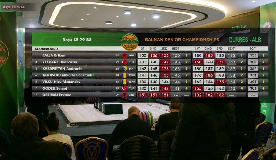 Në dygarësh, rezultati i Briken Caljas është 335 kg duke marrë kështu edhe medaljen e tretë të artë në këtë Kampionat Ballkanik dhe ky ishte edhe rekordi i tretë i Ballkanit.