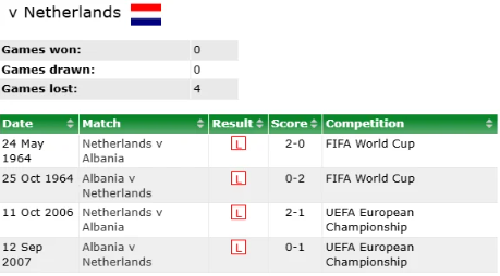 Ndryshe nga Japonia dhe Tunizia, dy ekipe që Kombëtarja kuqezi nuk i ka përballur kurrë, Holanda nuk është një kundërshtar aq i panjohur.