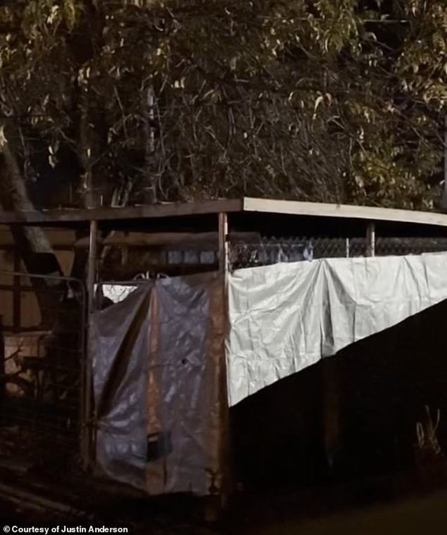 Fqinji Justin Anderson, 24 vjeç, dëgjoi britmat dhe vendosi të filmonte gjithçka, duke e kuptuar shpejt se bëhej fjalë për një situatë të rëndë, transmeton A2. Pasi pa të renë të mbyllur në kafazin e mbyllur me kabllo metalike, ai thirri policinë, ndërsa vazhdoi ta qetësonte viktimën nga ana tjetër e gardhit.