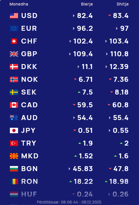 Ndërkohë monedha evropiane euro blihet me 96.2 lekë dhe shitet me 97 lekë.