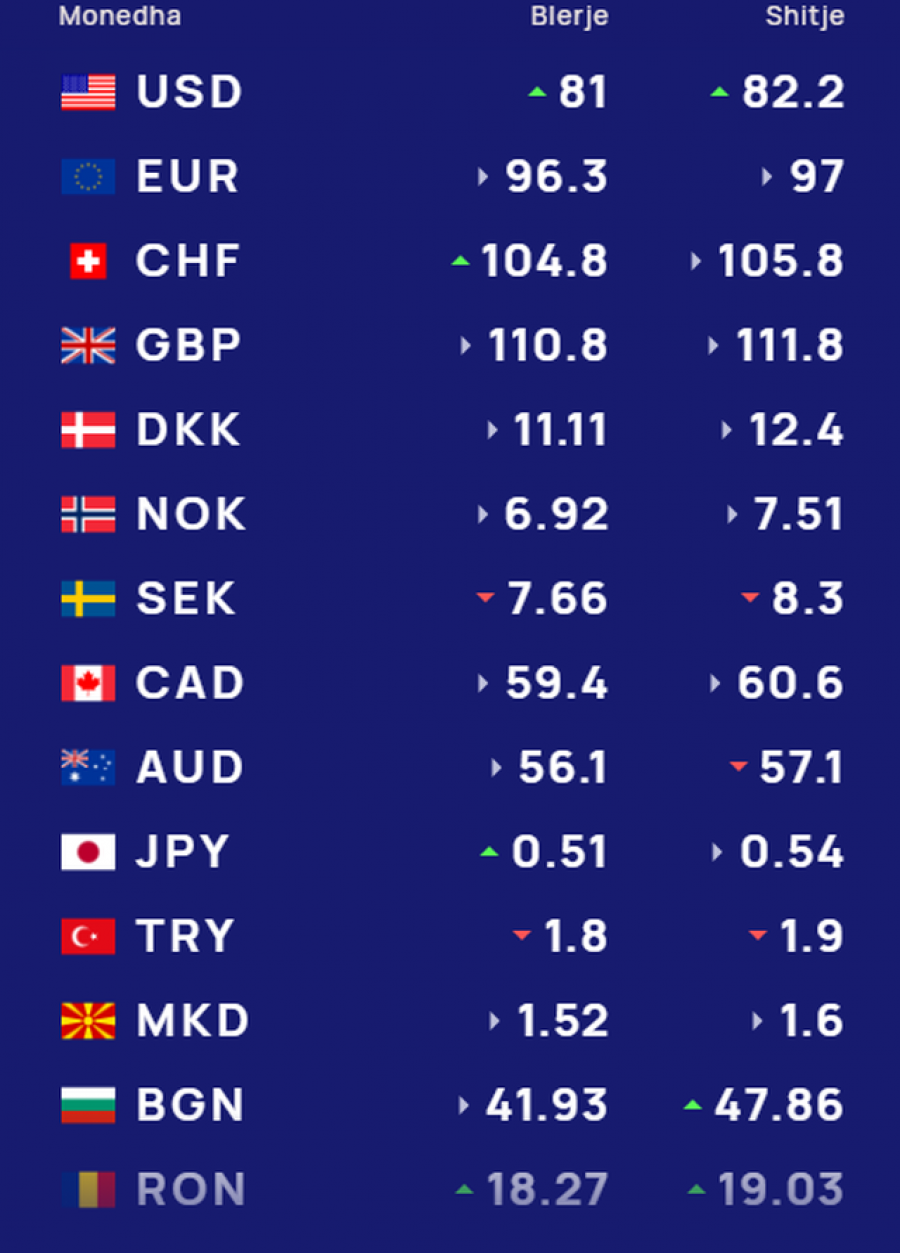 Më poshtë, tabela për të gjitha monedhat e huaja: