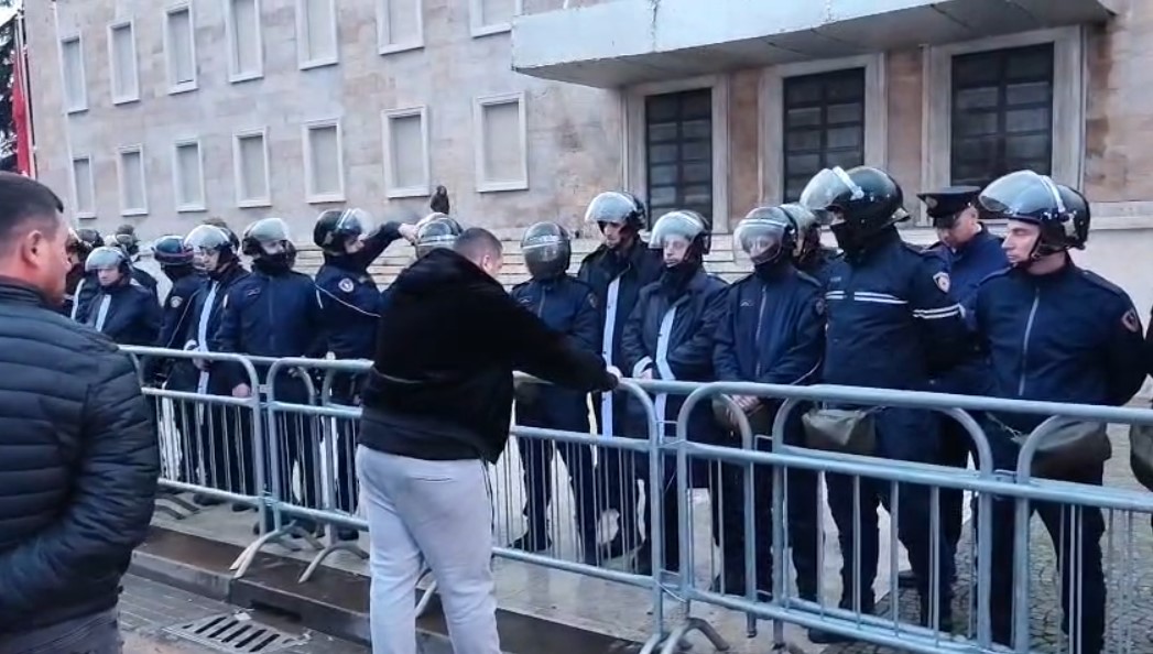 Megjithatë aty protestuesit kanë filluar grumbullimin. Një prej tyre ka qenë duke përplasur gardhet metalike përpara kryeministrisë dhe duke debatuar me efektivët e policisë.